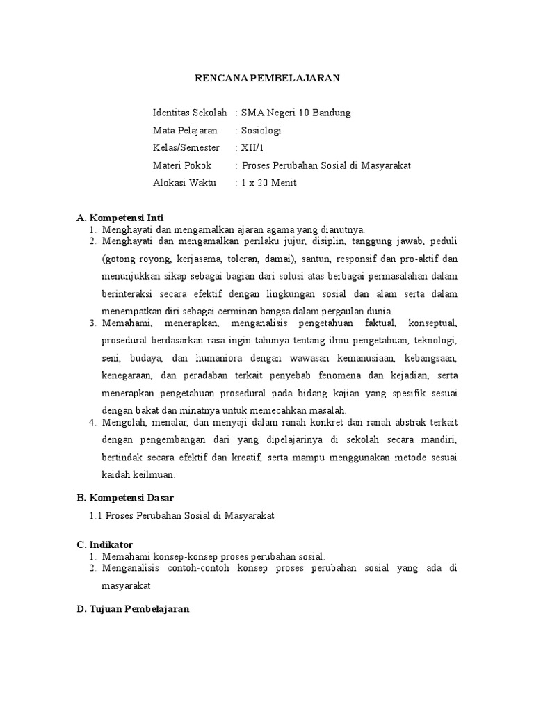 RPP Proses Perubahan Sosial