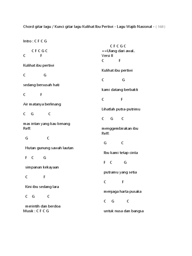 Chord Kulihat Ibu Pertiwi By Lagu Nasional | Chordlicious