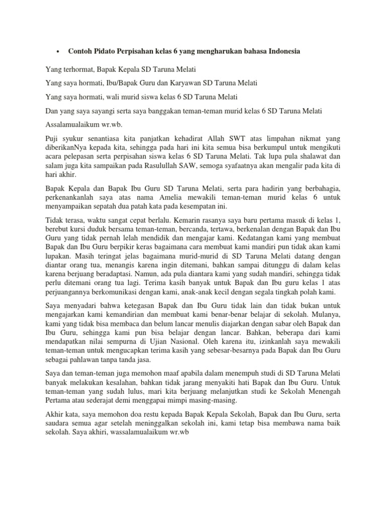 Contoh Pidato Perpisahan kelas 6 yang mengharukan bahasa Indonesia …