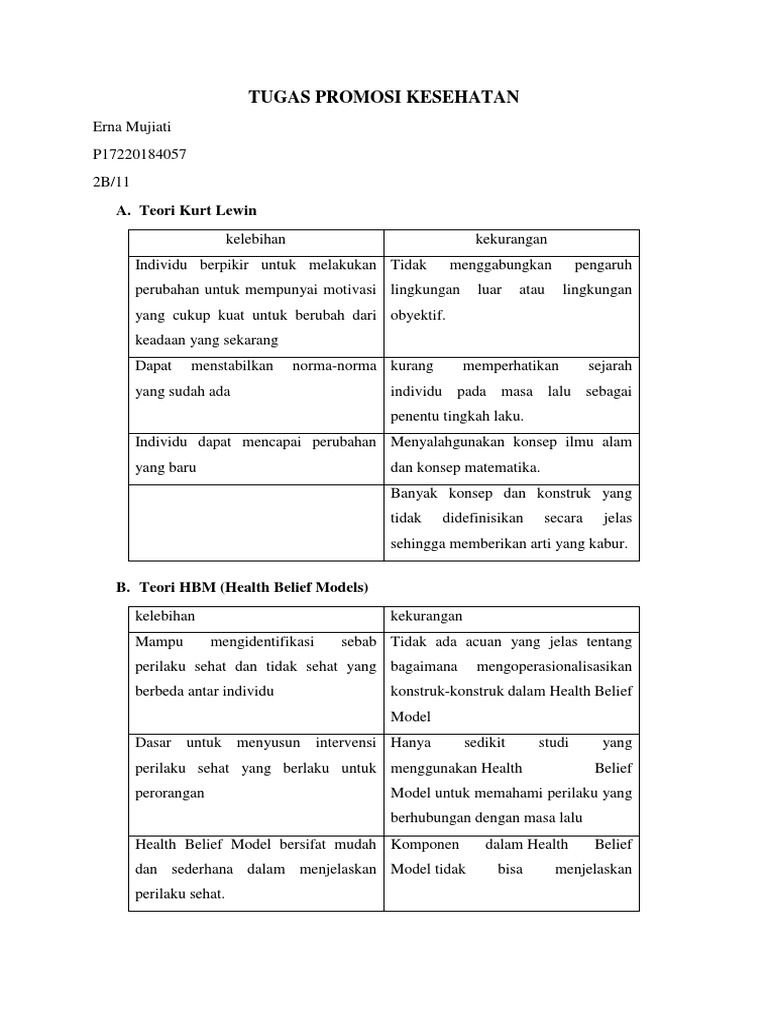 Tugas Promosi Kesehatan: A. Teori Kurt Lewin