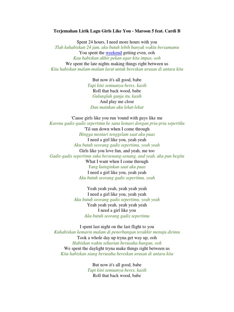Gudang Lagu - Girls Like You - Maroon 5 - Wattpad