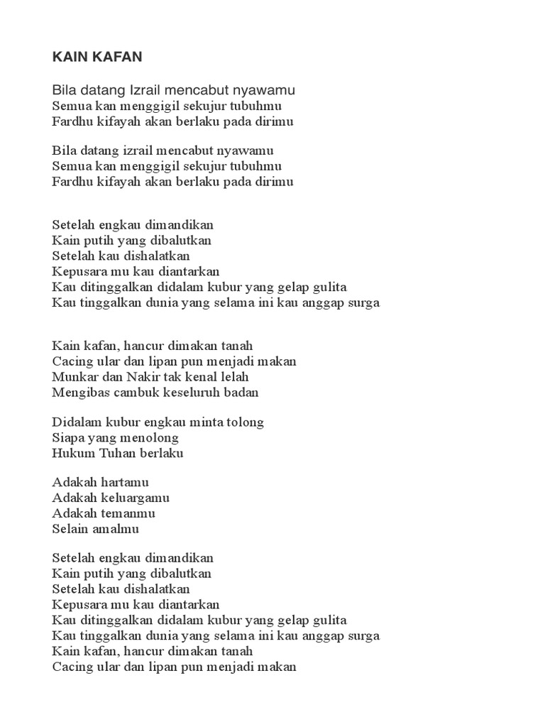 ariflemoon: Lirik Lagu Subro Alfarizi – Kain Kafan