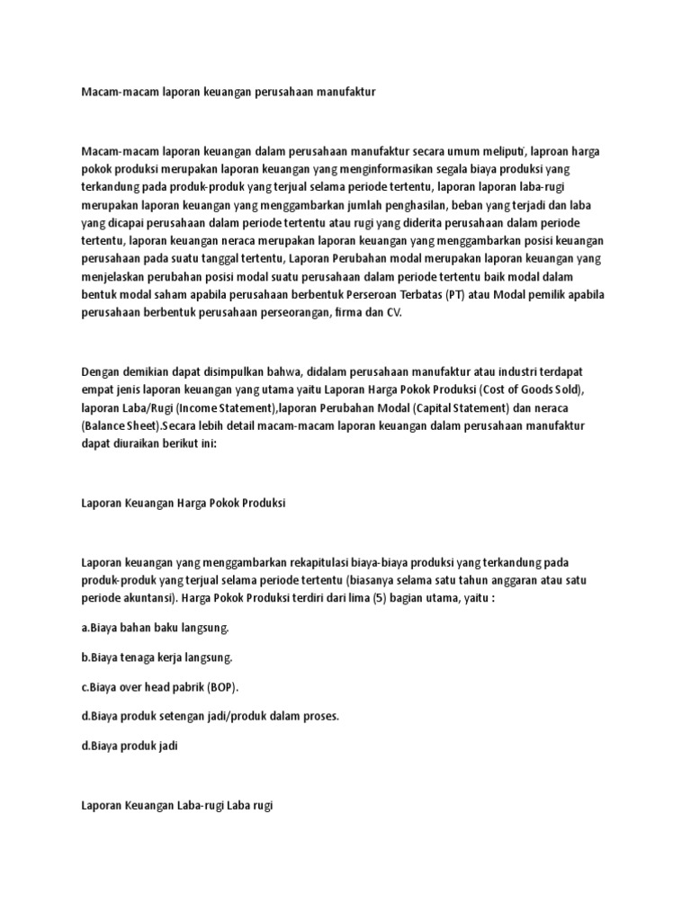 Contoh Laporan Keuangan Perusahaan Manufaktur Sederhana - Kumpulan …