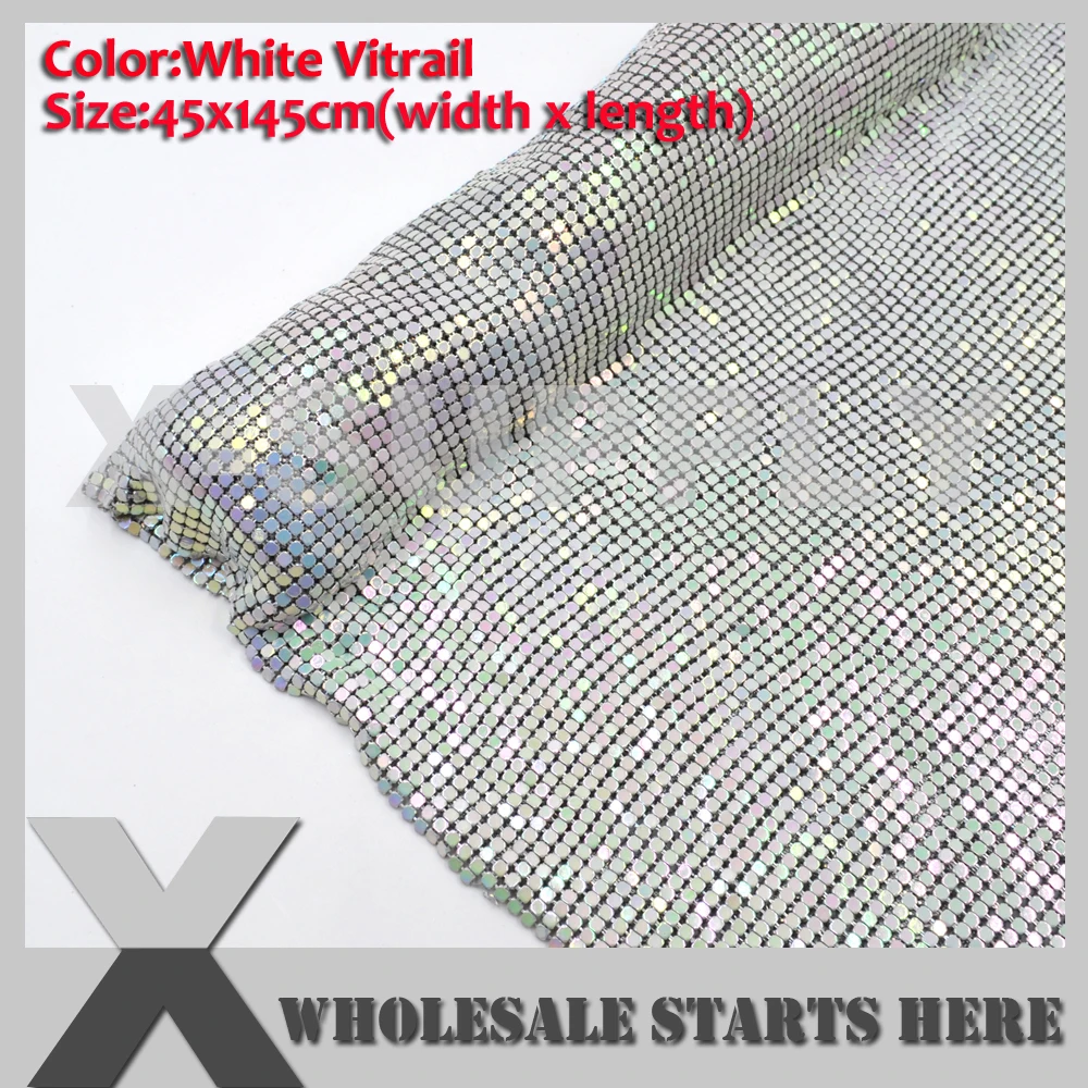 Putih Vitrail Logam Mesh Kain Tanpa Back Lem untuk Tas, Sepatu …
