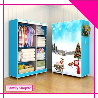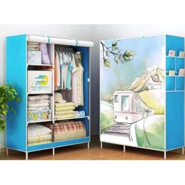 Laris Lemari Pakaian Kain Rakitan Diy 158X106X45Cm-Blue Limited | Shopee Indonesia