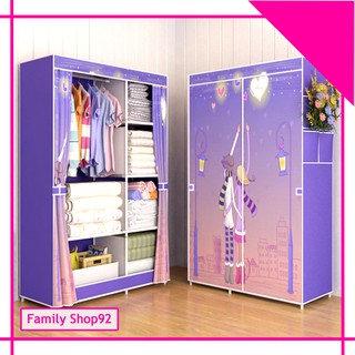 Lemari Pakaian Kain Rakitan DIY Motif Lucu 170 x 105 x 45 cm - Purple | Shopee Indonesia