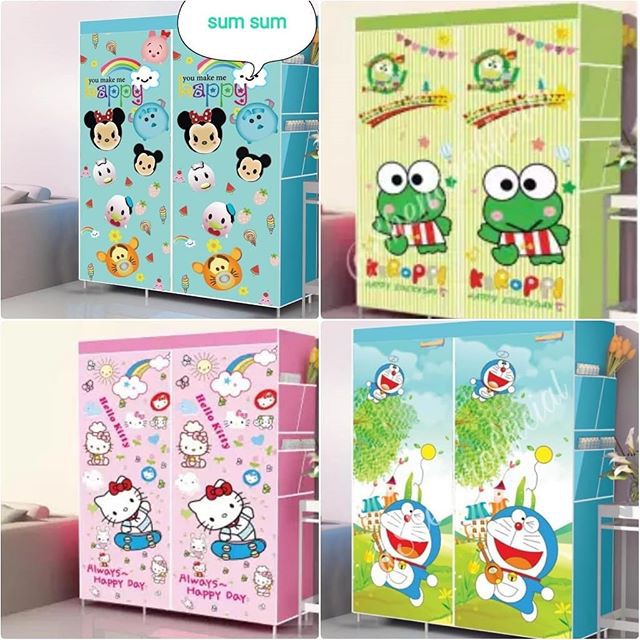 Lemari Pakaian Kain Rakitan DIY Motif Lucu 170 x 105 x 45 cm, Perabotan Rumah di Carousell
