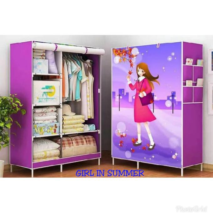 LEMARI PAKAIAN KAIN RAKITAN DIY MOTIF LUCU 170 X 105 X 45 CM - PURPLE KAYGADGET di lapak KAY Gadget | Bukalapak