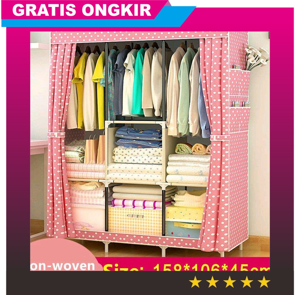 Lemari Pakaian Kain Rakitan DIY 170x167x39cm GY49 Tempat Pakaian | Shopee Indonesia