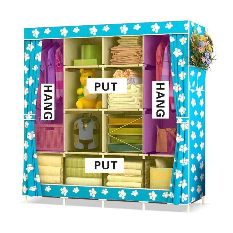 LEMARI PAKAIAN LEMARI PORTABLE LEMARI KAIN LEMARI BAJU PORTABLE - Biru Feet di Lapak qakur shop | Bukalapak