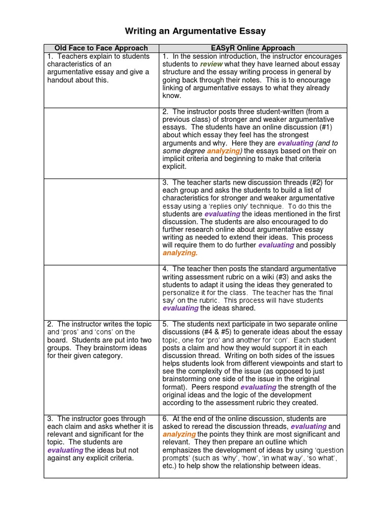 Writing An Argumentative Essay: Old Face To Face Approach Easyr Online Approach | Rubric (Academic) | Educational Assessment