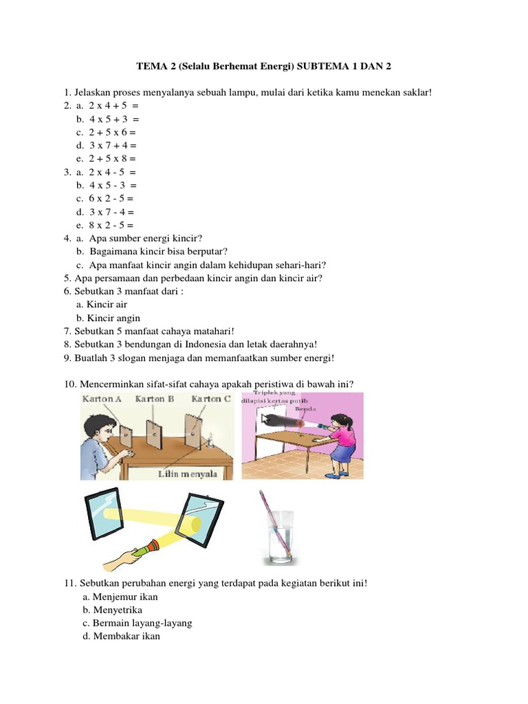 Kunci Jawaban Percobaan Perubahan Energi Kelas 4 - SDonline