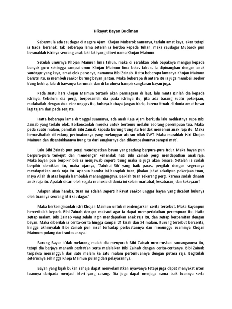 Sebutkan nilai EDUKASI dalam hikayat Bayan budiman. Tolong ya bsk dikumpulin :) - Brainly.co.id