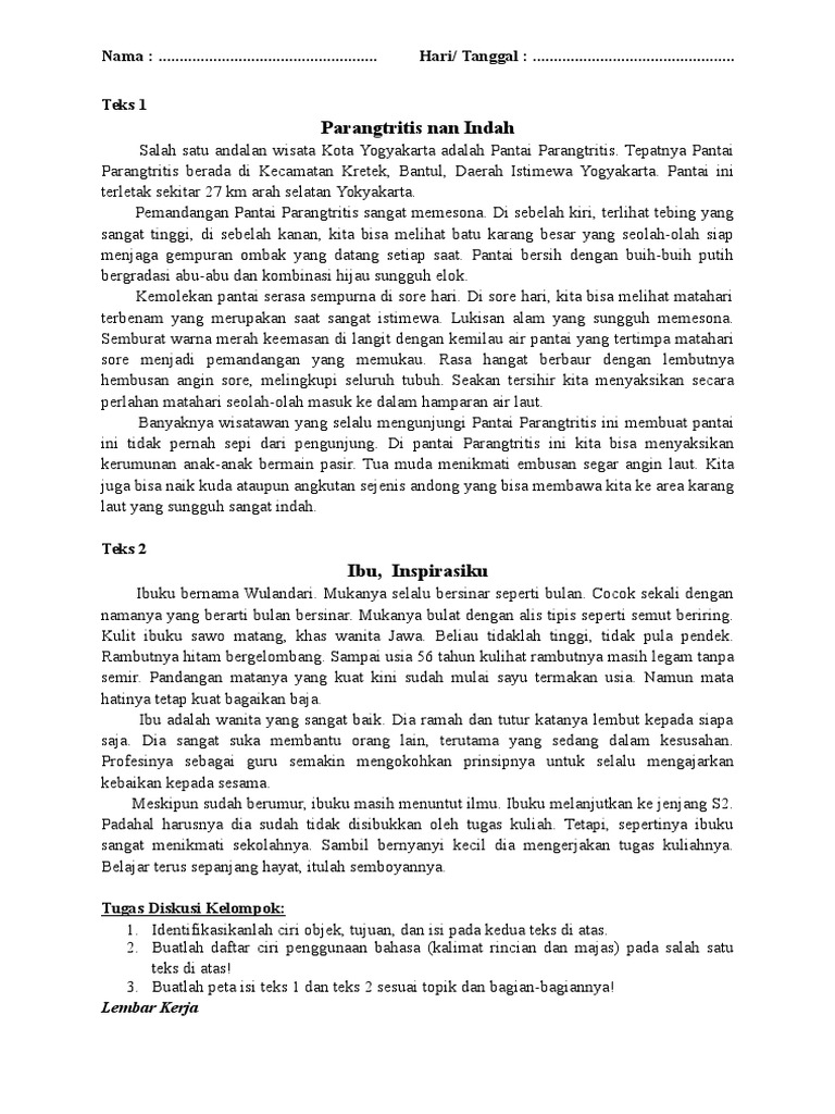 Menentukan Ciri Isi Bahasa dan Tujuan Teks Deskripsi | Mikirbae.com