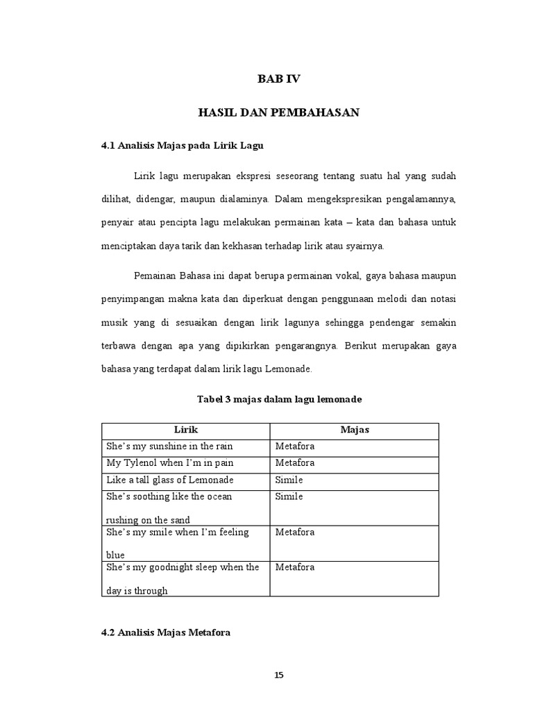 BAB 1 PENDAHULUAN 1.1 Latar Belakang - 27763-Metafora dalam…Metafora atau majas digunakan di dalam lirik lagu dengan tujuan … Penggunaan metafora dalam lirik lagu dilakukan