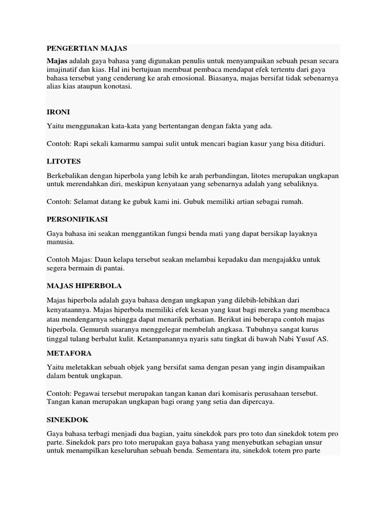 DOC) Pengertian Majas dan Macam-Macam Majas | Anto Subagja - Academia.edu