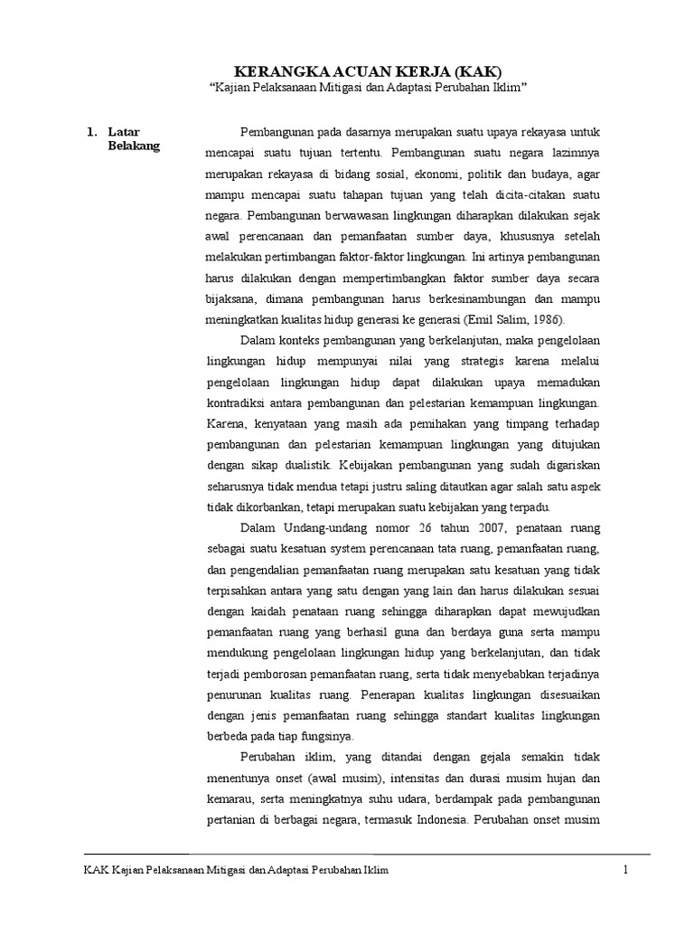 KAK Kajian Pelaksanaan Mitigasi Dan Adaptasi Perubahan Iklim