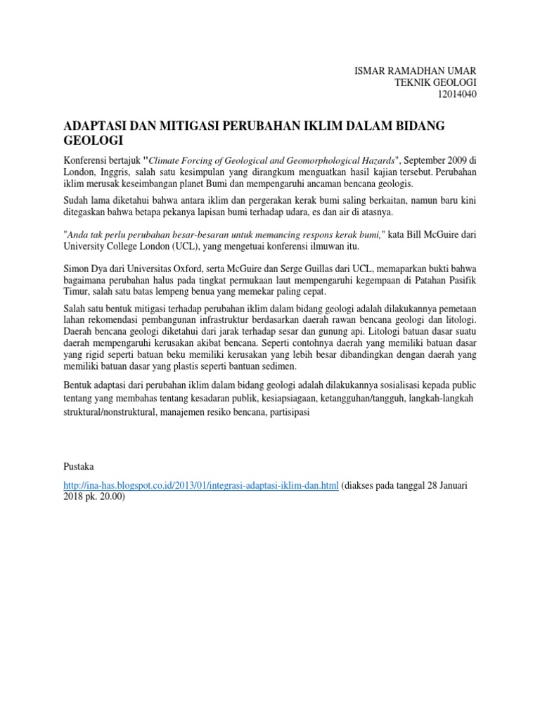 Adaptasi dan Mitigasi Terhadap Perubahan Iklim dalam Bidang Geologi