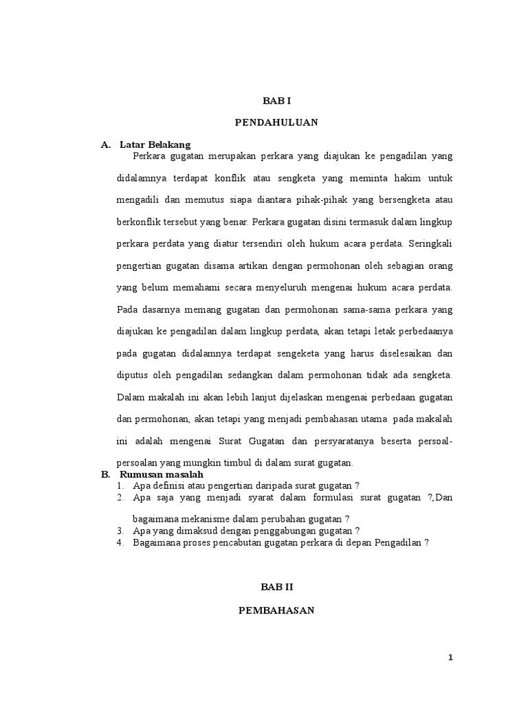 DOC) Makalah Gugatan dalam Hukum Perdata | Bahar Faruqi - Academia.edu