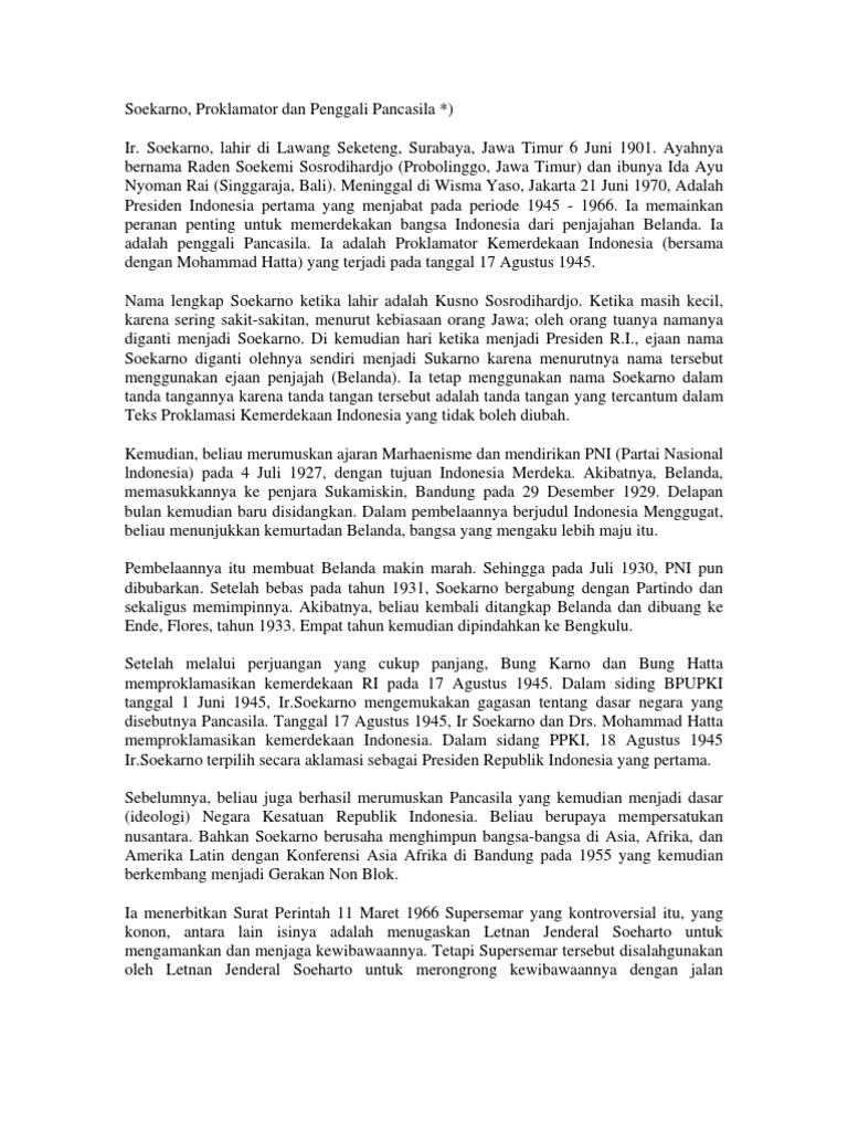 Biografi Singkat Presiden Soekarno - Detak Kaltim