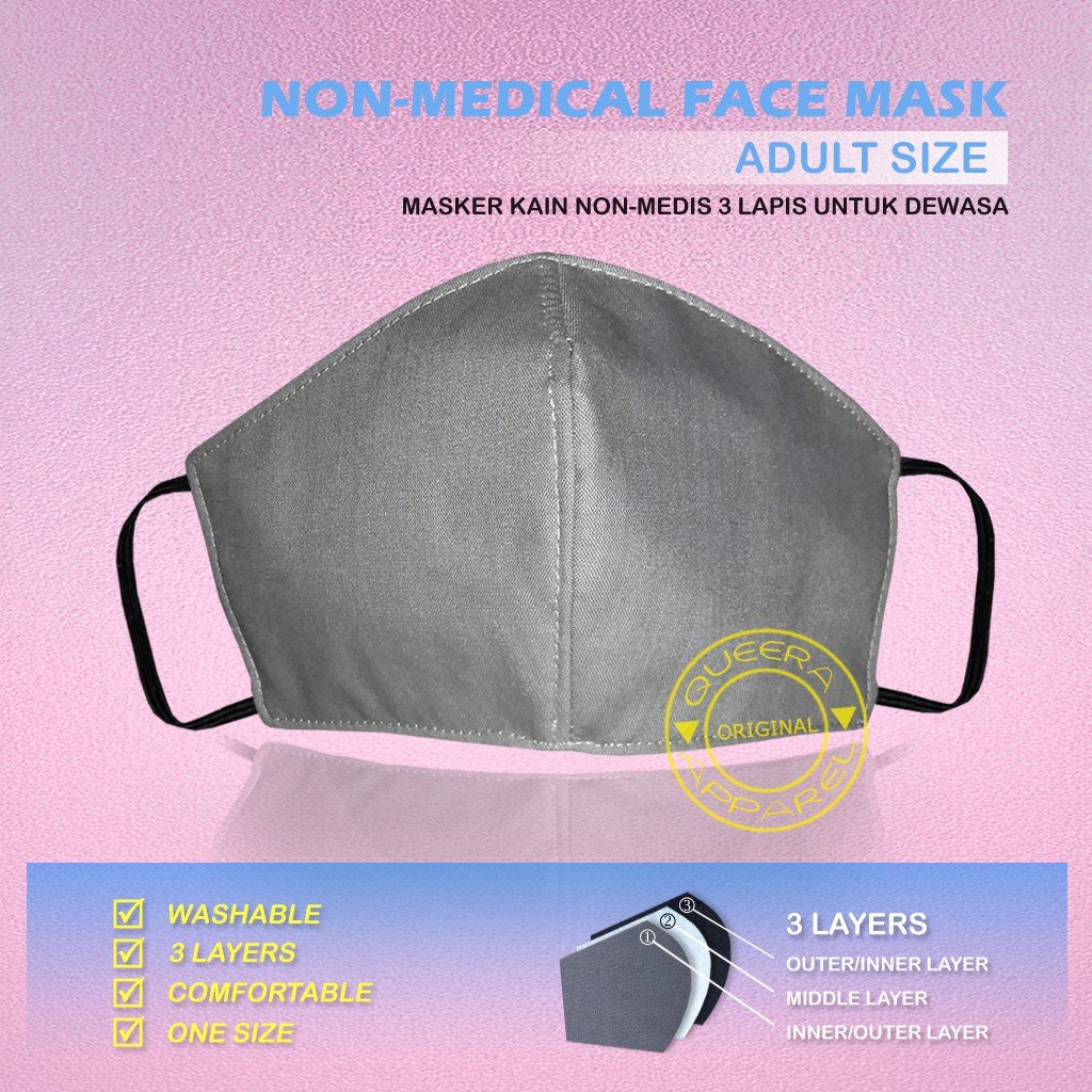 Jual Masker kain dewasa (mask) bahan kaos premium 2 lapis - Abu-abu - Kab. Tangerang - nagajah online store | Tokopedia