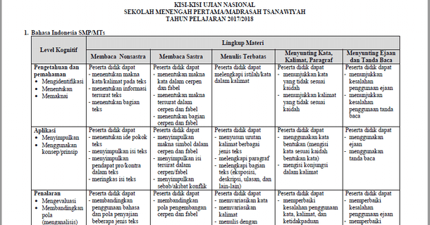 Kisi-kisi Un Bahasa Indonesia 2018