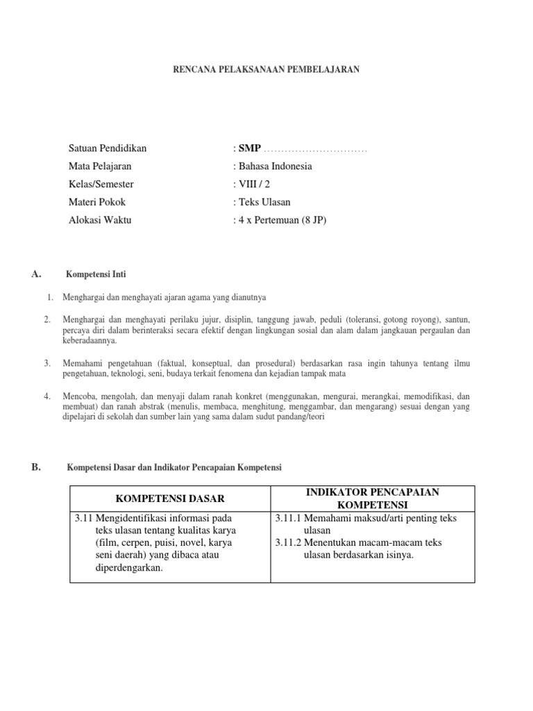 RPP TEKS ULASAN KELAS VIII SEMESTER 2 ~ ZUHRI INDONESIA