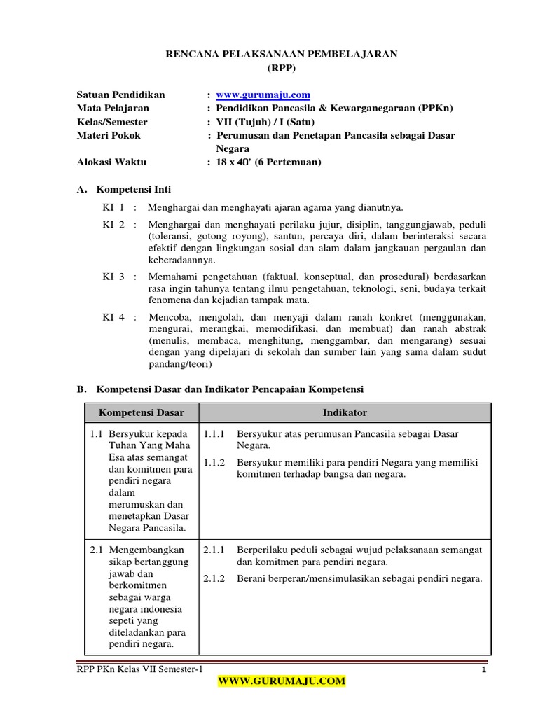 Rpp ppl 2 kelas 7 bab 1 tentang berkomitmen terhadap pancasila sebaga…