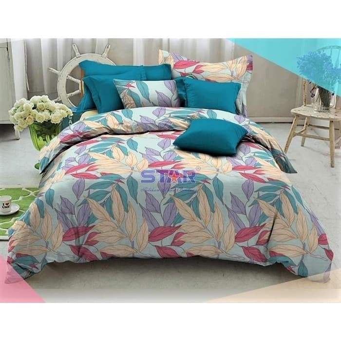 Jual Bedcover Set Katun Motif Leaf Tosca & Orange Size Double - 160x200x20 - Kab. Sleman - ViGe Sprei & Bedcover | Tokopedia
