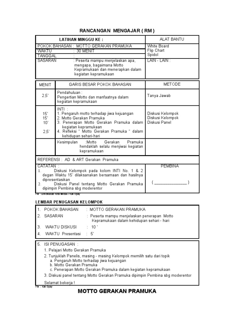 Rencangan Mengajar Motto Gp & Outdoor Scouting Games