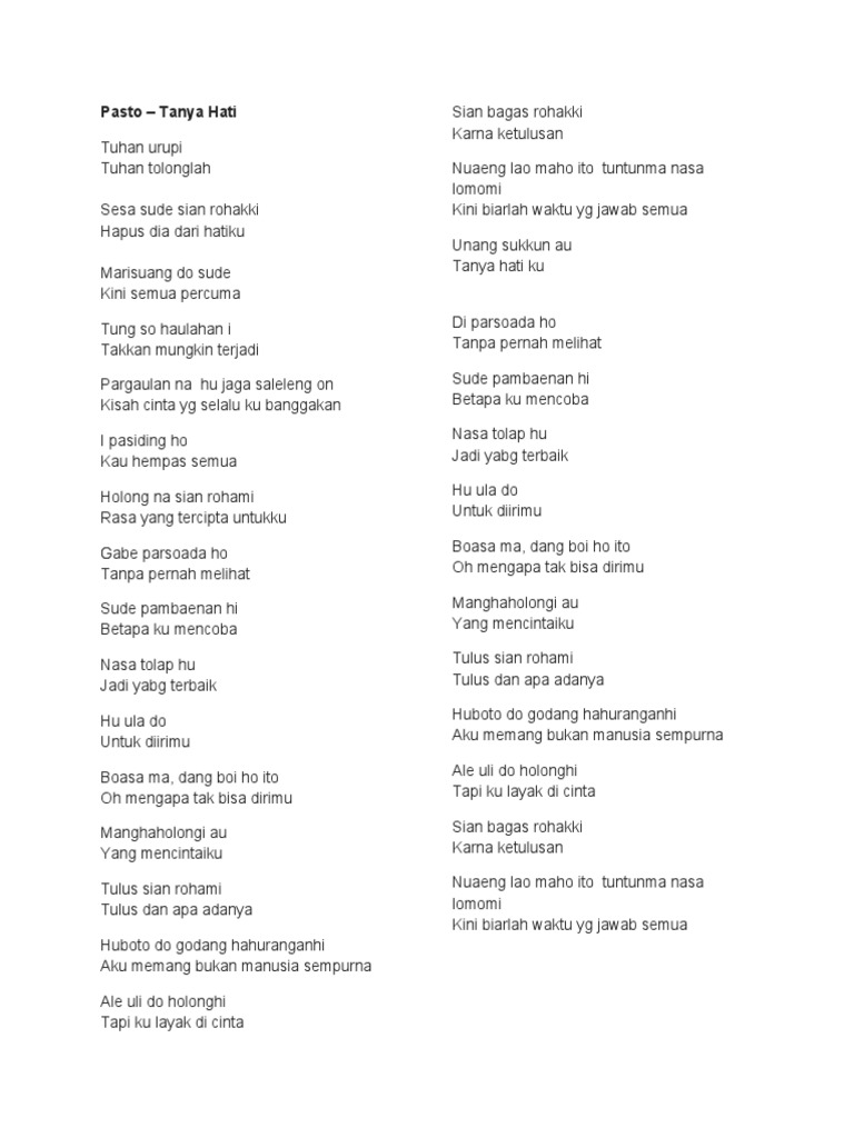 Lirik Lagu Tanya Hati - Pasto