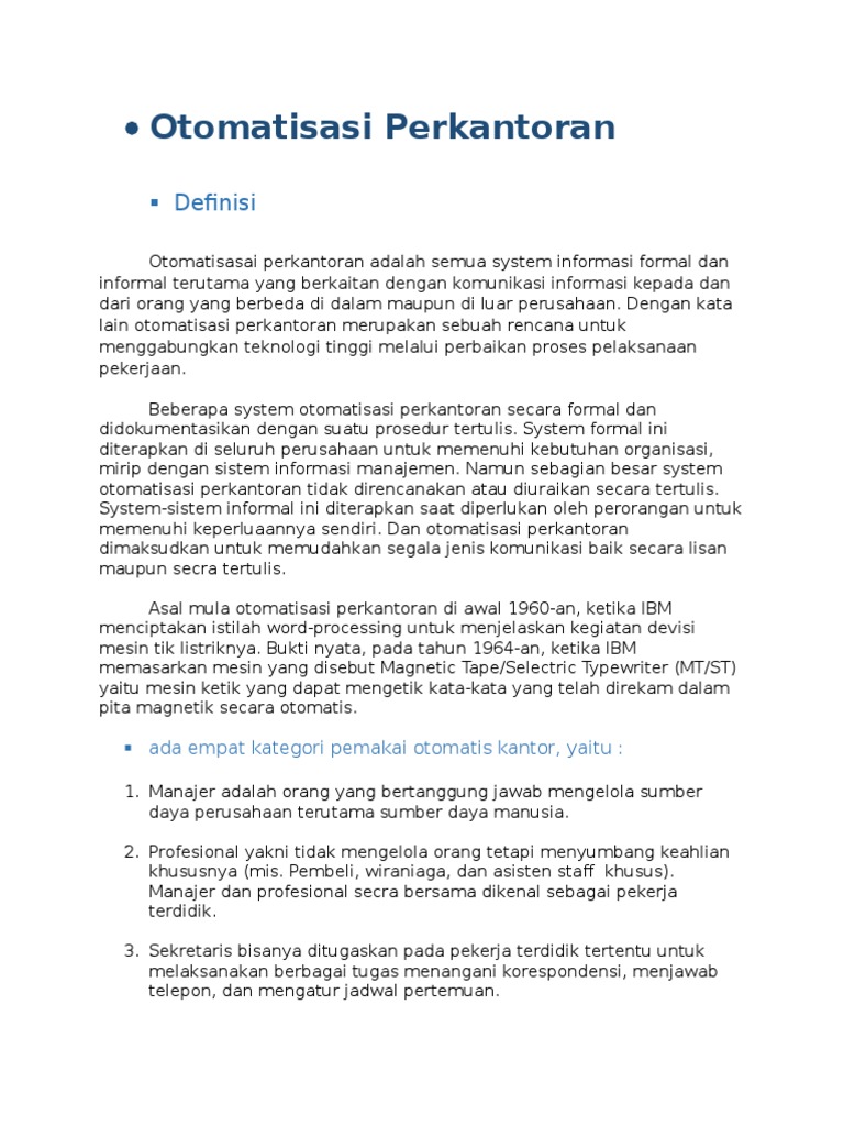 OTOMATISASI KANTOR (OFFICE AUTOMATION/OA) - PDF Free Download