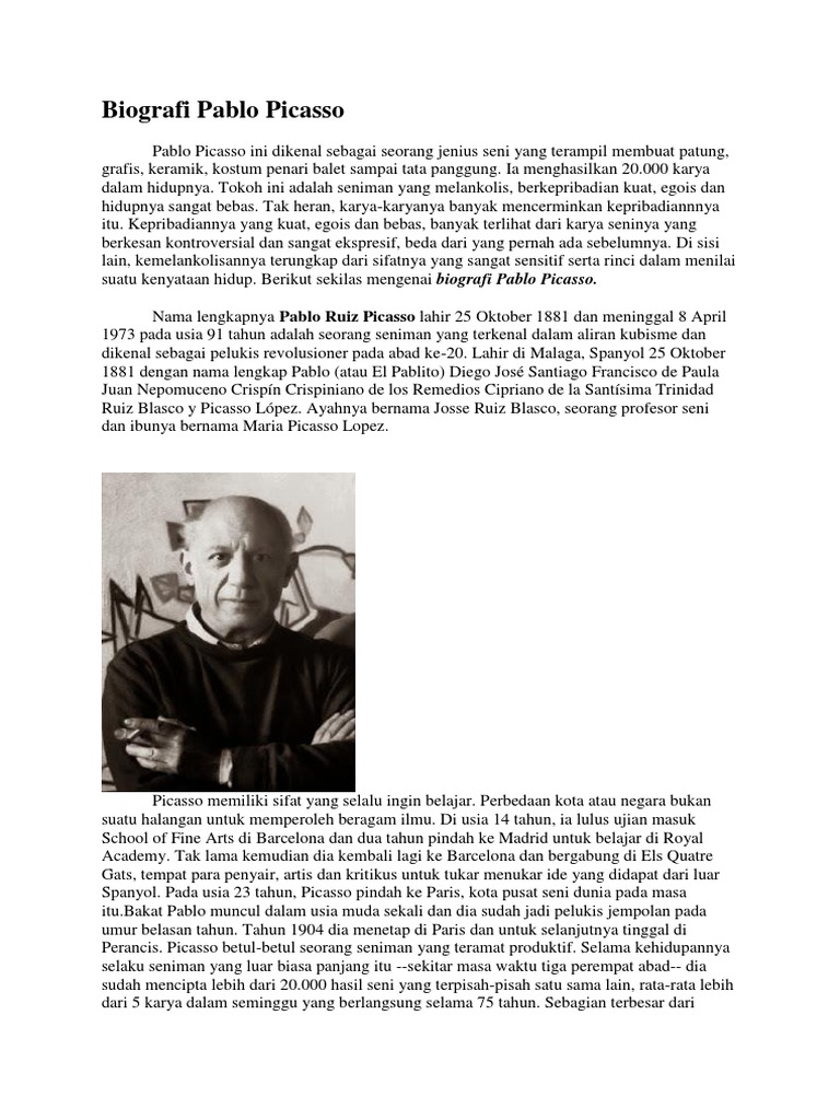 DOC) Biografi Pablo Picasso Seniman Kubisme | Dyas Fiansyah - Academia.edu