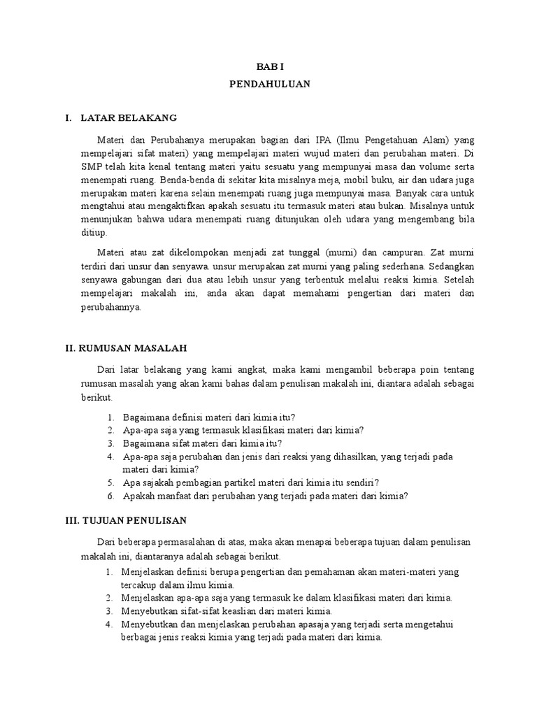 makalah materi dan perubahan materi