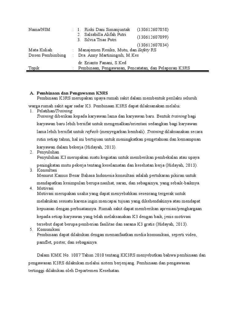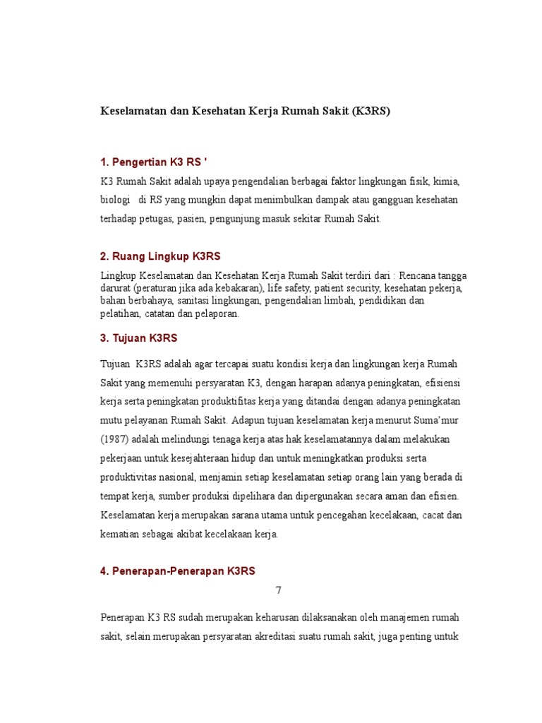 DOC) PRAKProgram Keselamatan dan Kesehatan Kerja Rumah Sakit (Program K3RS | Regita Cahyani - Academia.edu