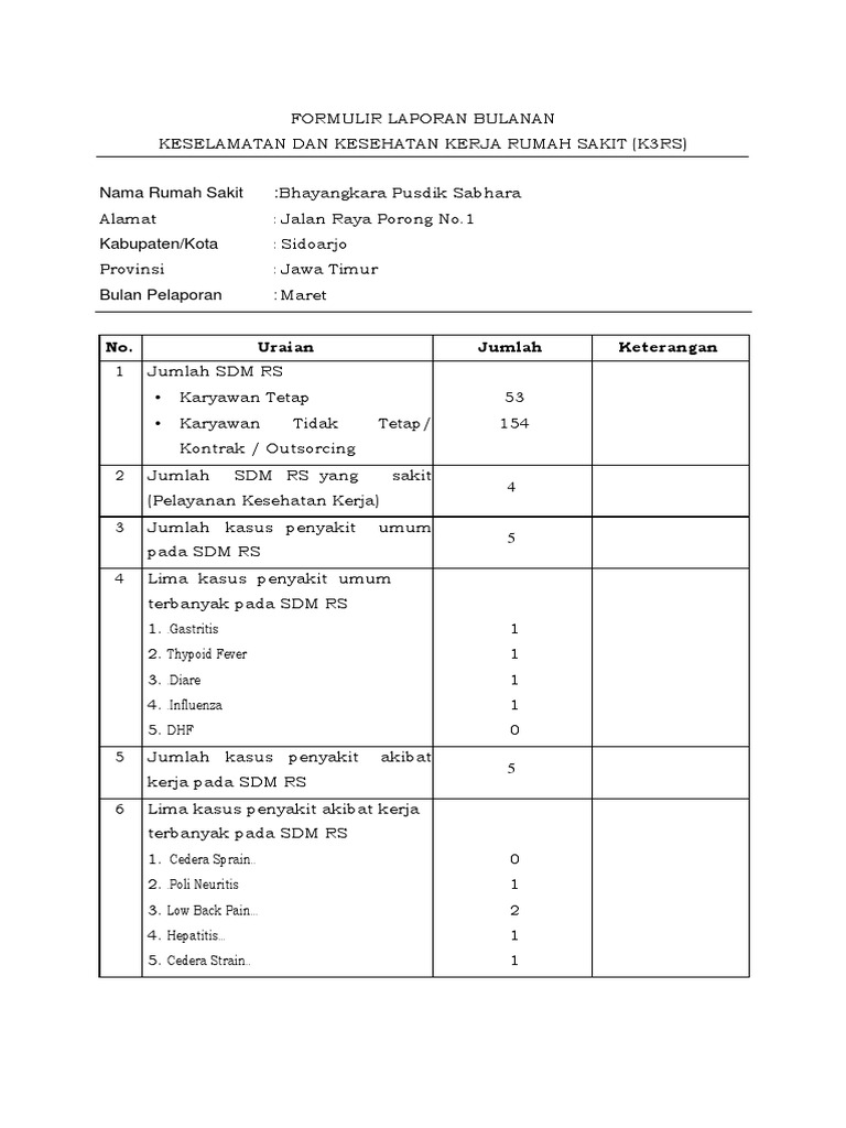 Contoh Laporan Bulanan K3 Rumah Sakit - Kumpulan Contoh Laporan