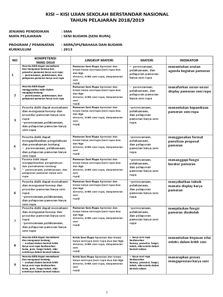 KISI-KISI USBN-SMA-Seni Budaya (Seni Rupa)-Teori dan Praktik-K2013 Pages 1 - 4 - Text Version | AnyFlip