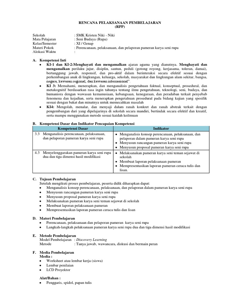 DOC) RPP SENI BUDAYA KELAS XI K 13 | Marlia Bakti - Academia.edu