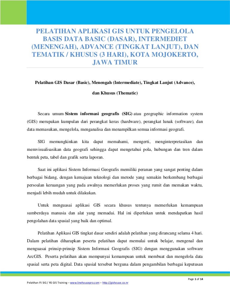 PELATIHAN APLIKASI GIS UNTUK PENGELOLA BASIS DATA BASIC (DASAR), INTE