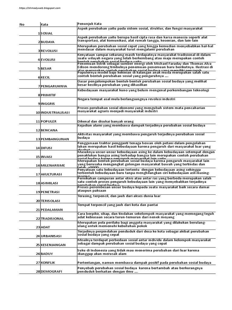 Membuat TTS Materi Perubahan Sosial Budaya Kelas 9