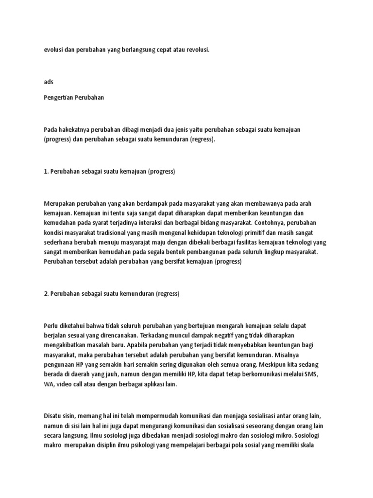 Pengertian Perubahan Evolusi Dan Revolusi