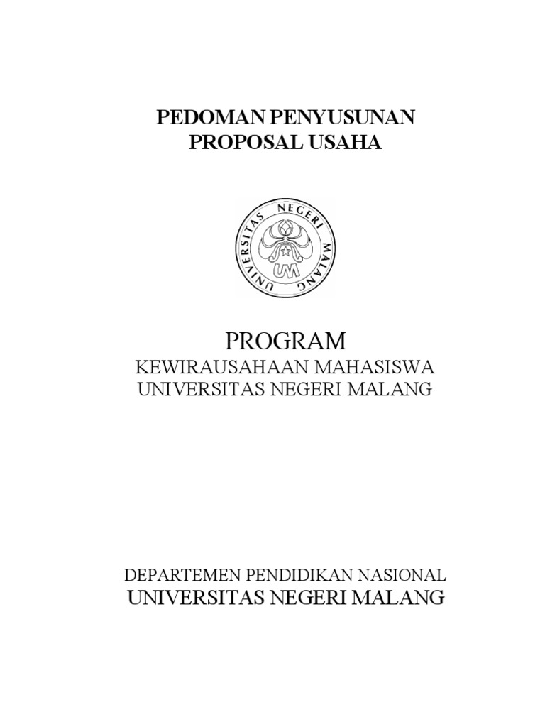 DOC) PEDOMAN PENYUSUNAN PROPOSAL USAHA PROGRAM KEWIRAUSAHAAN MAHASISWA (PMW) UNIVERSITAS NEGERI MALANG TAHUN 2014 | triana dewileonis and Bagus Yudayana - Academia.edu