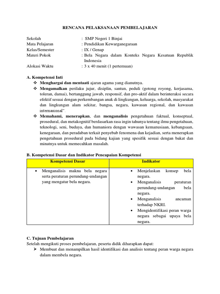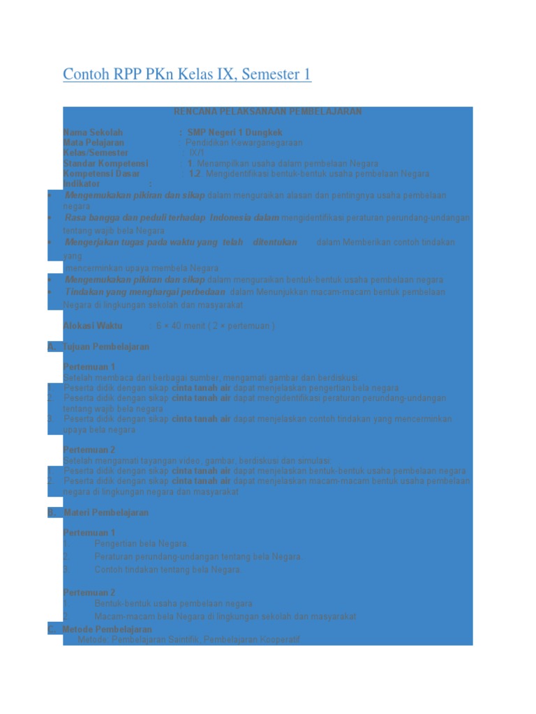 Contoh RPP PKn Kelas IX