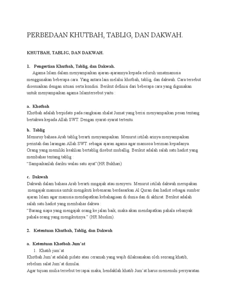 DOC) MAKALAH KUTBAH TABLIGH DAN DAKWAH | Elonesa Winma - Academia.edu