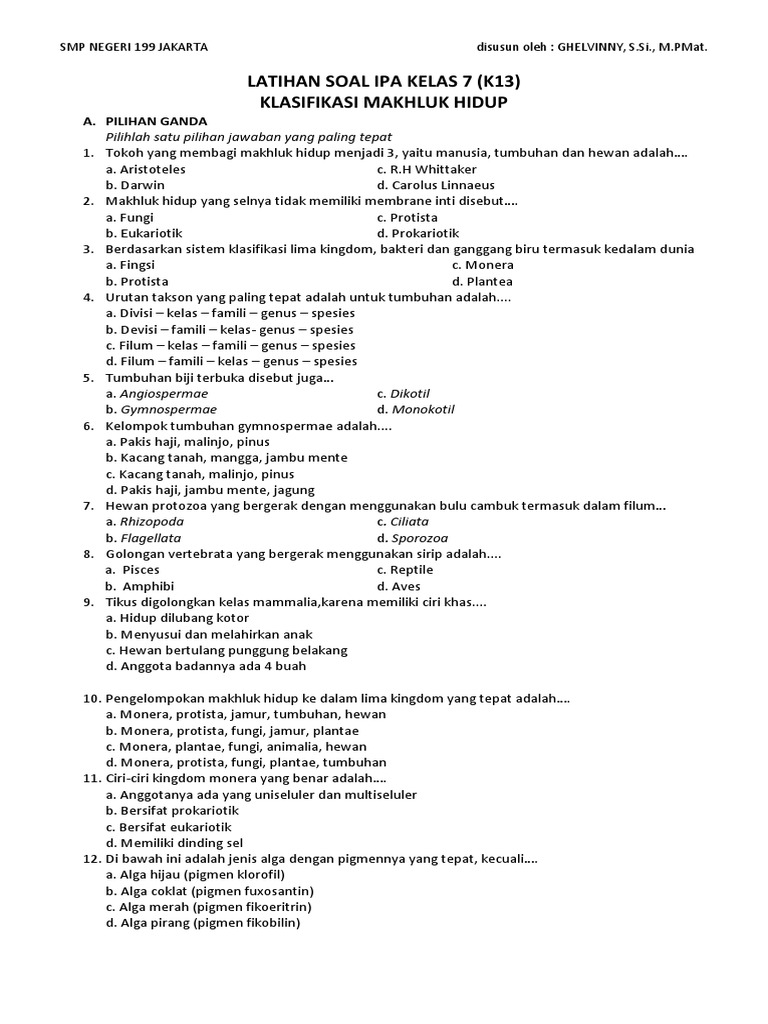 DOC) Latihan Soal semester 1 Biologi Kelas X (Beserta Jawaban …