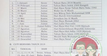 Manajemen Sekolah: Hari Libur Nasional dan Cuti Bersama Tahun 2018
