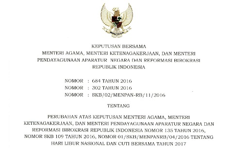 Revisi SKB 3 Menteri – Cuti Bersama 2017 |