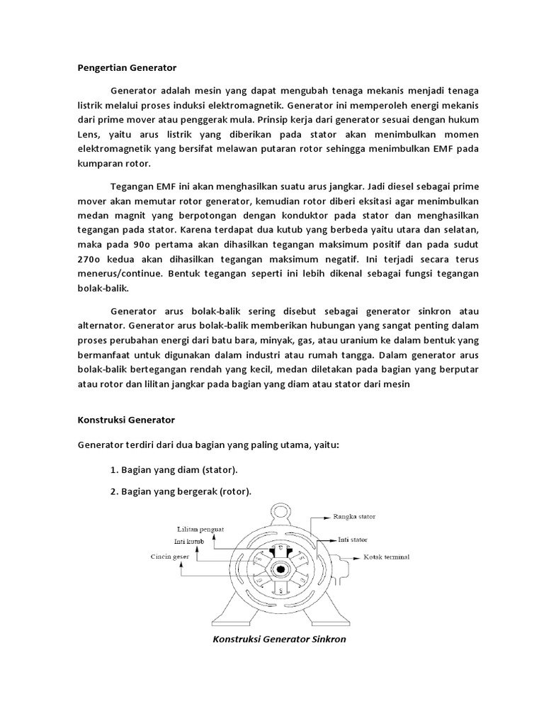 Prinsip Kerja Generator | Panduan Teknisi