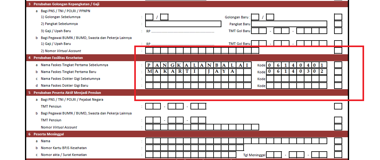 Formulir Perubahan data Kepesertaan BPJS (PDF dan Excel) - Pasien BPJS