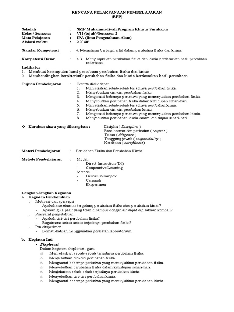Rpp Perubahan Fisika Dan Kimia